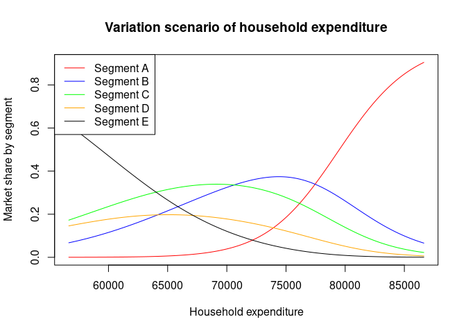 xlab = "Household expenditure", ylab = "Market share by segment")
