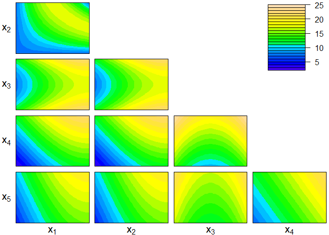 cf_highdim(friedman, 5, color.palette=topo.colors)
