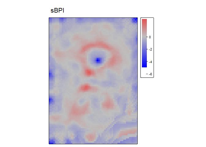 bpi2<- BPI(r, w = annulus_window(radius = c(4,6), unit = "cell"), stand= "sd", na.rm = TRUE) # equivalent to BPI code from earlier