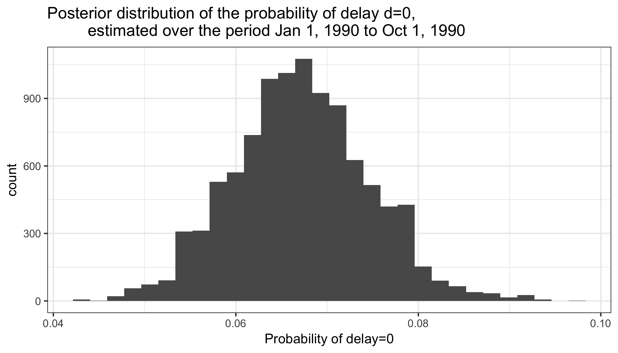 ggtitle("Posterior distribution of the probability of delay d=0,