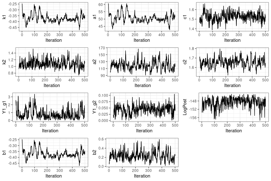 head(MCMC)## k1 a1 c1 k2 a2 c2 Y1_g1 Y1_g2