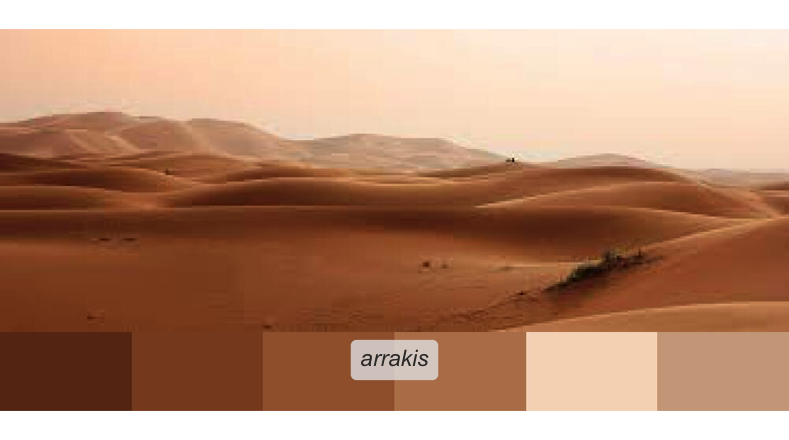 The {Rdune} package offers a collection of color palettes inspired by ‘Dune’, designed for use in data visualizations and graphics with {ggplot2}.
