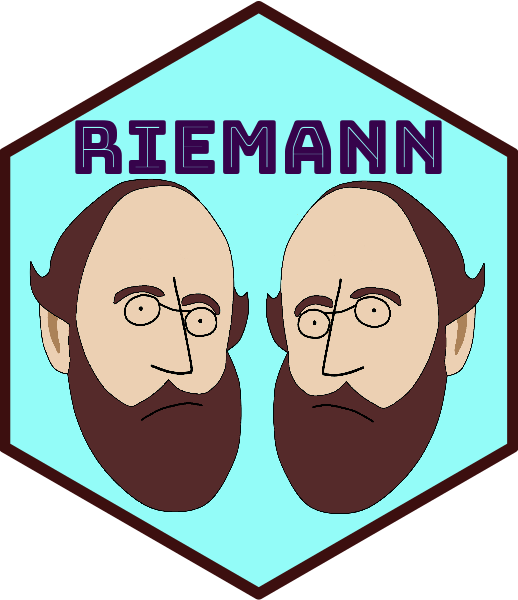 Riemann is an R package for learning with data on Riemannian manifolds. In statistics and machine learning, the term manifold appears in two realms; one is dimensionality reduction where we assume that low-dimensional data manifold is embedded in high-dimensional Euclidean space. The other is statistics on manifolds - data lie on some Riemannian manifolds that we are already well aware of. Riemann aims to achieve the latter. If you are interested in dimension reduction, please check another R package Rdimtools.