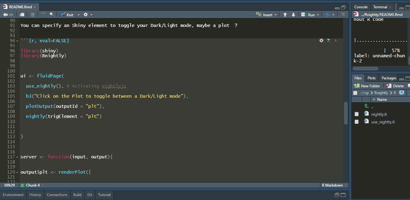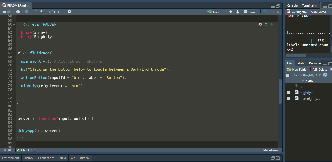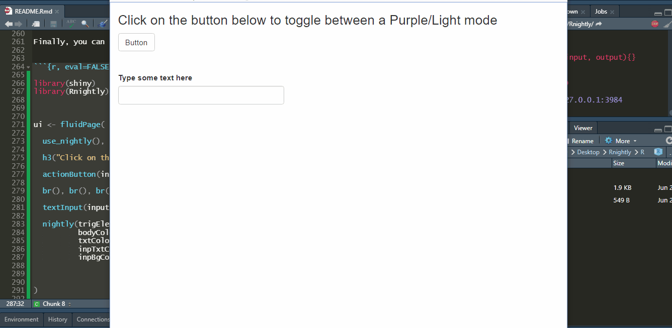 nightly(trigElement = "btn") # Make sure to provide the same id