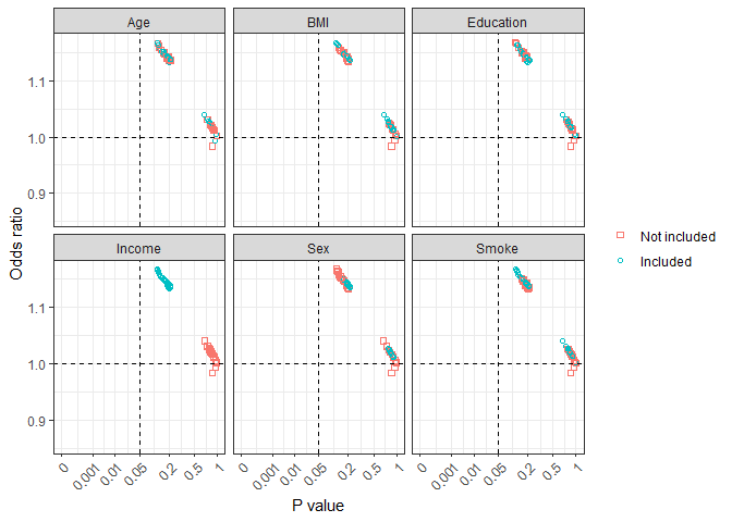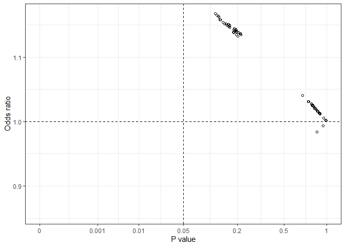 #> Crude model: Diabetes ~ MarriedAll those possible effect estimates (odds ratios in this case) are