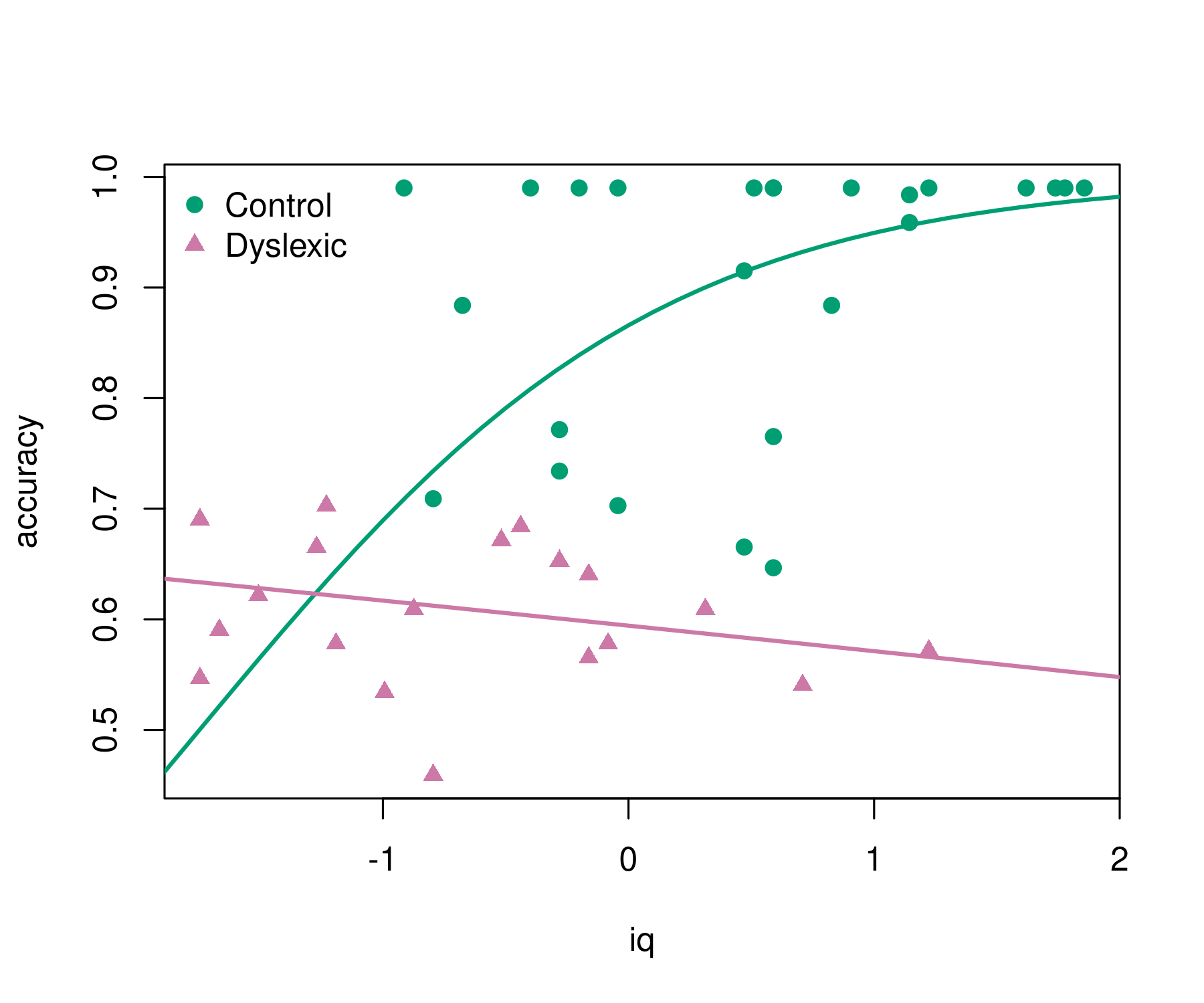 legend("topleft", c("Control", "Dyslexic"), pch = pch, col = pal, bty = "n")