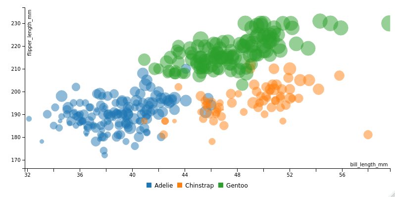 bb_scatterplot(data = penguins, x = "bill_length_mm", y = "flipper_length_mm", group = "species") %>%