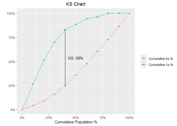 #> decile total 1 0 ks tp tn fp fn sensitivity specificity accuracy
