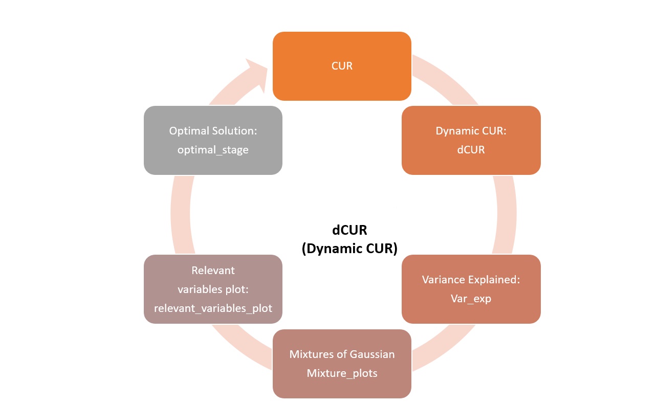 Dynamic CUR is a function that boosts the CUR descomposition varying the k, number of columns, and rows used, its final purposes is help to find the stage which minimizes the relative error.
