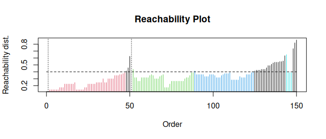opt <- extractDBSCAN(opt, eps_cl = 0.4)