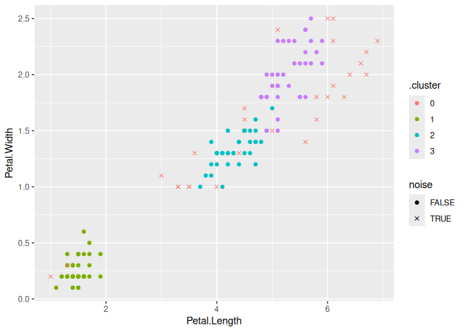 x <- as.matrix(iris[, 1:4])DBSCAN
