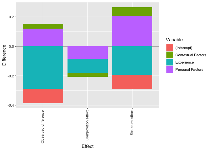 Hlavac, Marek. 2022. “oaxaca: Blinder-Oaxaca Decomposition in R”. R package version 0.1.5. https://CRAN.R-project.org/package=oaxaca.