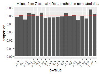 To address this problem, Deng et al. (2018) proposed a modified statistical hypothesis testing method. Their approach replaces the standard variance estimation formula in the Z-test with an approximate formula derived via the Delta method, which accounts for within-user correlation. To simplify the application of this method, the deltatest package has been developed.
