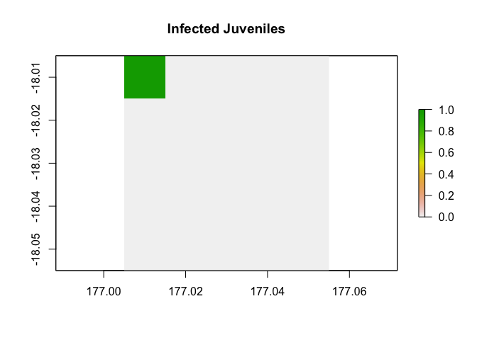Here is the initial state of an idealized theoretical disease scenario, following a SIR disease model with three life cycle stages: juvenile, yearling, and adult.