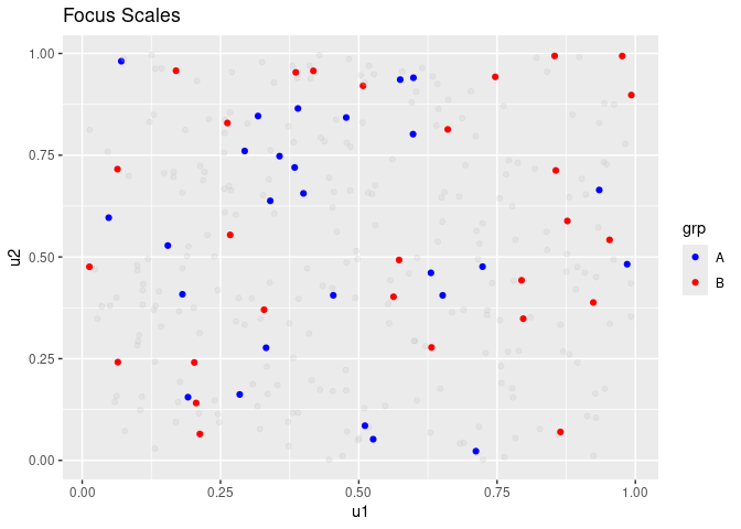 ggplot(df, aes(x = u1, y = u2, color = grp, alpha = grp)) +