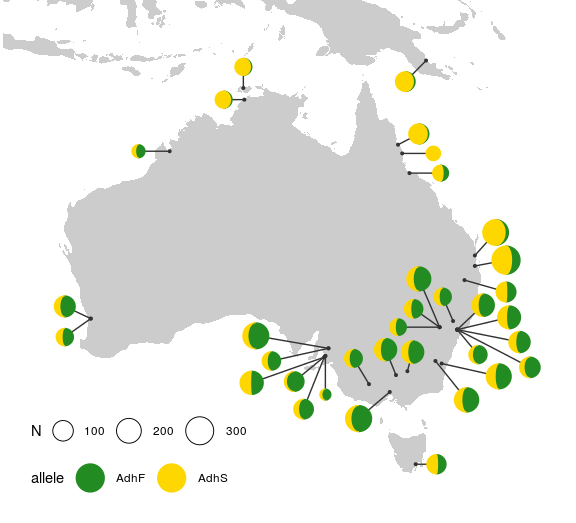 frequencies of two variants of the Adh gene in Australian and