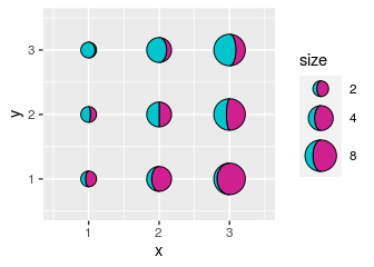 scale_size("size", range = c(5, 10), breaks = 2^(1:3))