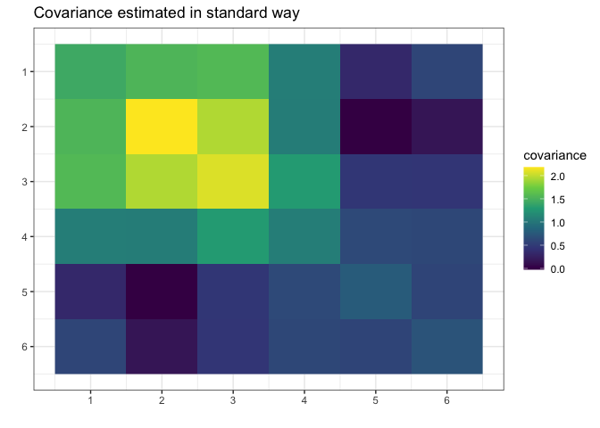 plot(g, type = "heatmap") + ggplot2::ggtitle("Covariance estimated in standard way")