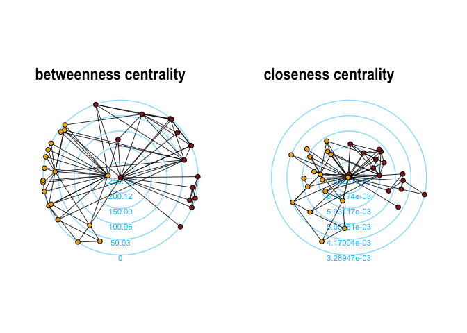 p1 <- ggraph(karate, layout = "centrality", centrality = bc, tseq = seq(0, 1, 0.15)) +