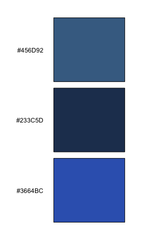 iwanthue(3, 220, 260, 12, 150, 0, 53, plot=TRUE) # blue ocean