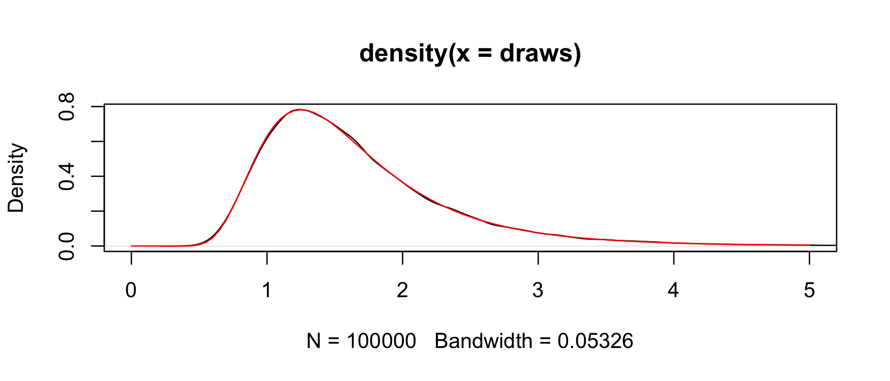 # [1] 2.640734 1.364965 1.342591 2.095975 1.273201rinvgamma() can be used to obtain a Monte Carlo