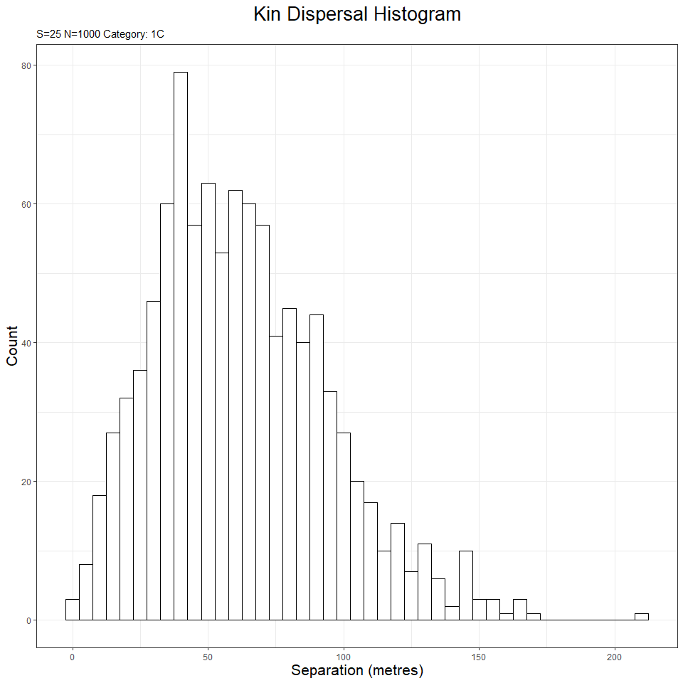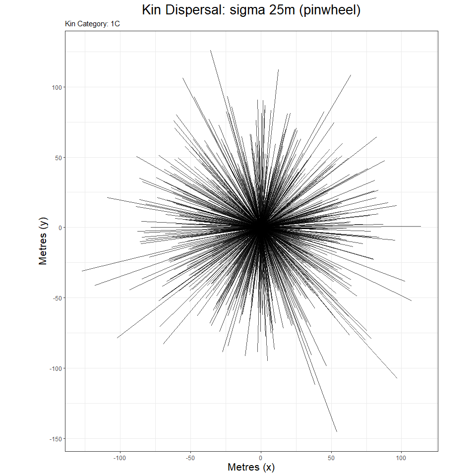 #> KINDISPERSE SIMULATION of KIN PAIRS