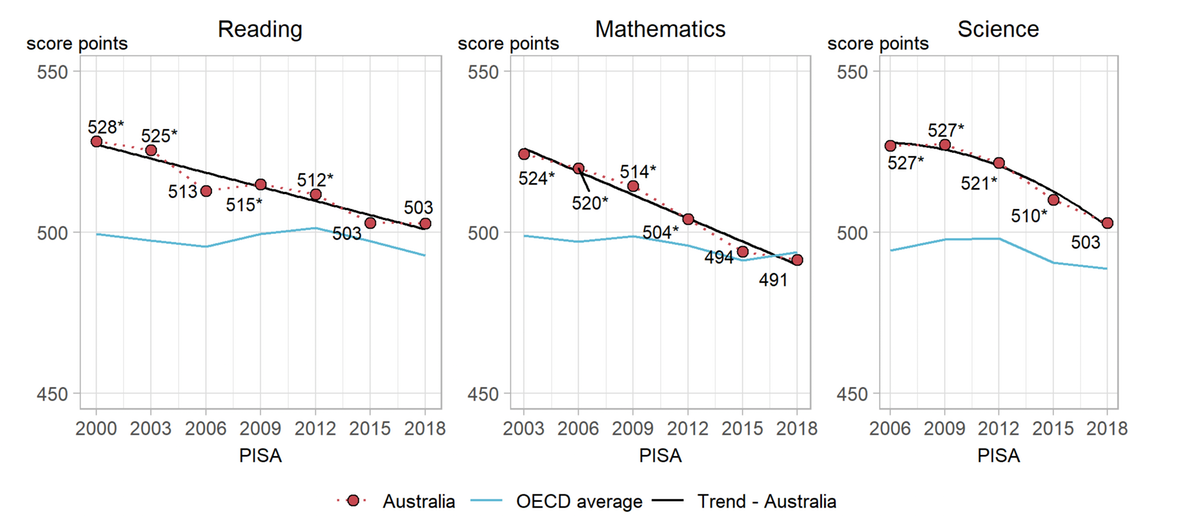 Australia’s neighbours, New Zealand and Indonesia, are also worrying: New Zealand top-end in OECD’s latest PISA report but drop in achievements ‘worrying’, Not even mediocre? Indonesian students score low in math, reading, science: PISA report.