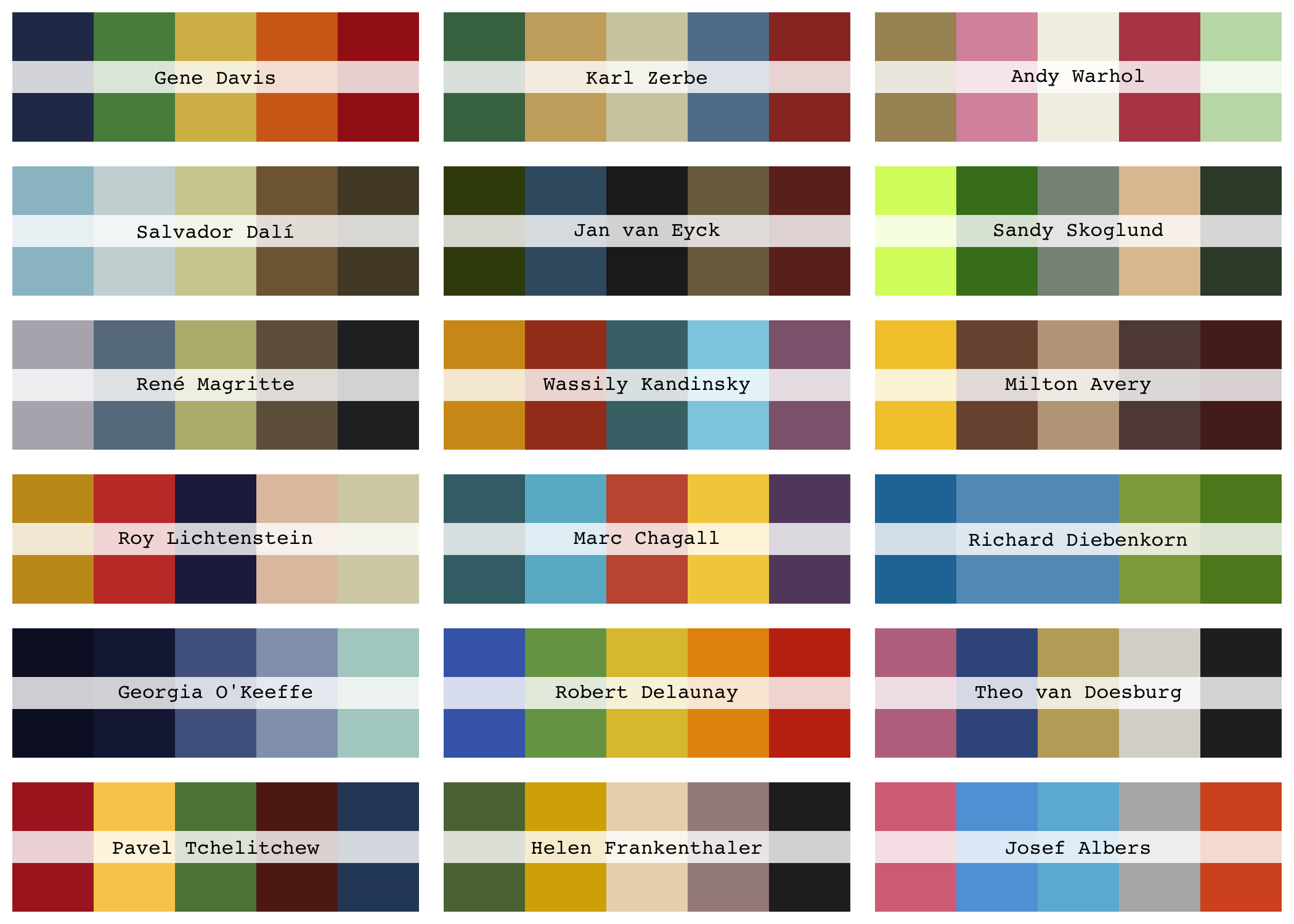#> 1 Josef Alb… Adobe (Varian… JosefAlbers #D77186 #61A2… http://www.wikiart.org/…