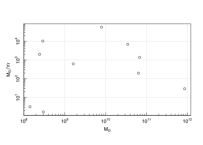 magplot(temp[,1:2], xlab=expression(M['\u0298']), ylab=expression(M['\u0298']/Yr), unlog='xy')