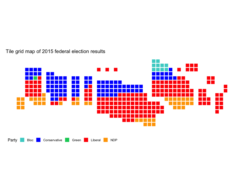 library(tidyverse)riding_binplot() can be used to create tile cartograms