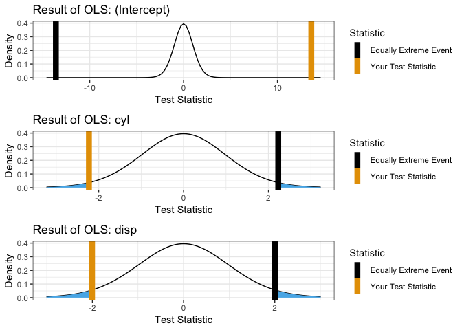 ================ This package is used to visualize distributions in relation to traditional hypothesis tests. We have found that students are capable of interpreting p-values, but often struggle with understanding how they relate to the underlying distribution. The stats package performs statistical tests while we visualize the results.