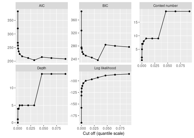 #> 5.481 ])As in the VLMC case, the optimal model remains rather simple: