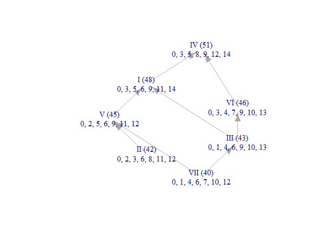 The “MCT” in musicMCT stands for Modal Color Theory, a theory of musical scale structure developed by Paul Sherrill, “Modal Color Theory,” Journal of Music Theory 69/1 (2025): 1-49. The goal of this package is to give musicians and music scholars computational tools that make it easier to work with this theory. In a nutshell, Modal Color Theory models musical scales as points in a geometry. The locations of those points relative to various hyperplane arrangements tell us a lot about the scales’ internal structures and mutual relationships. The shape of those hyperplane arrangements gets pretty complex: for the important case of seven-note scales, the main arrangement has 42 hyperplanes in a 6-dimensional space. Computational tools are therefore very helpful.