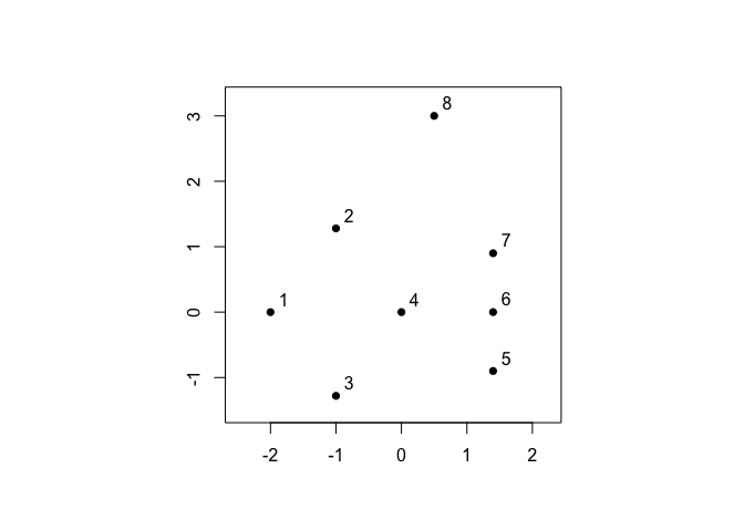 converts an input data frame (with \(n\) rows) into an \(n \times n\) distance matrix. In Euclidean