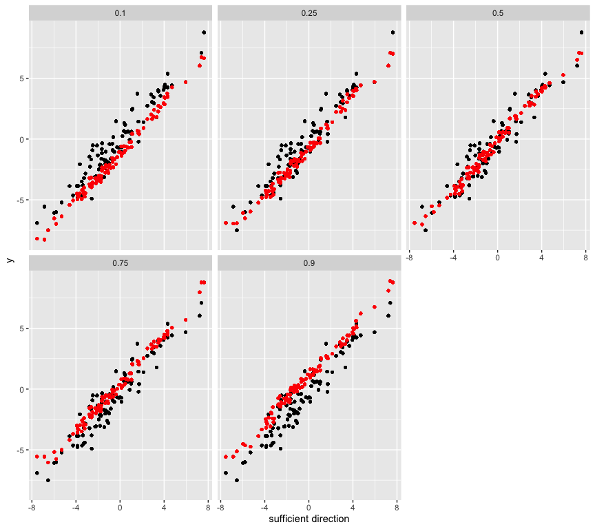 # Estimate and plot the conditional quantile function using the new sufficient predictors