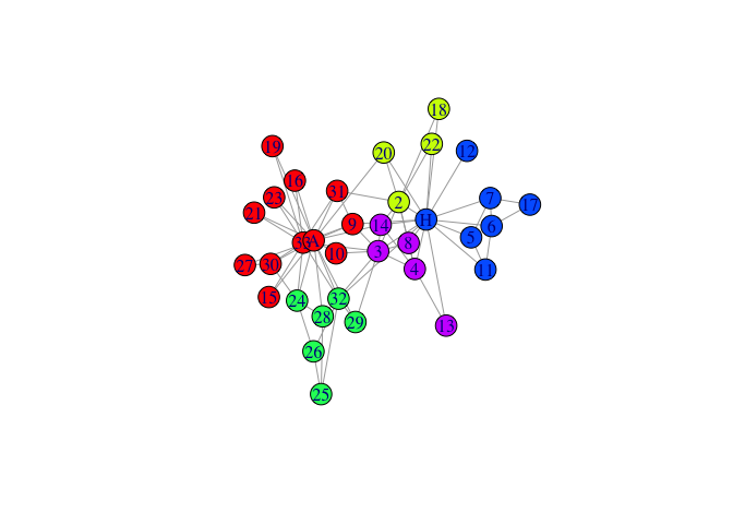 mem0<-igraph::membership(rSpectral::spectral_igraph_communities(karate))palette <- rainbow(max(as.numeric(mem0)))