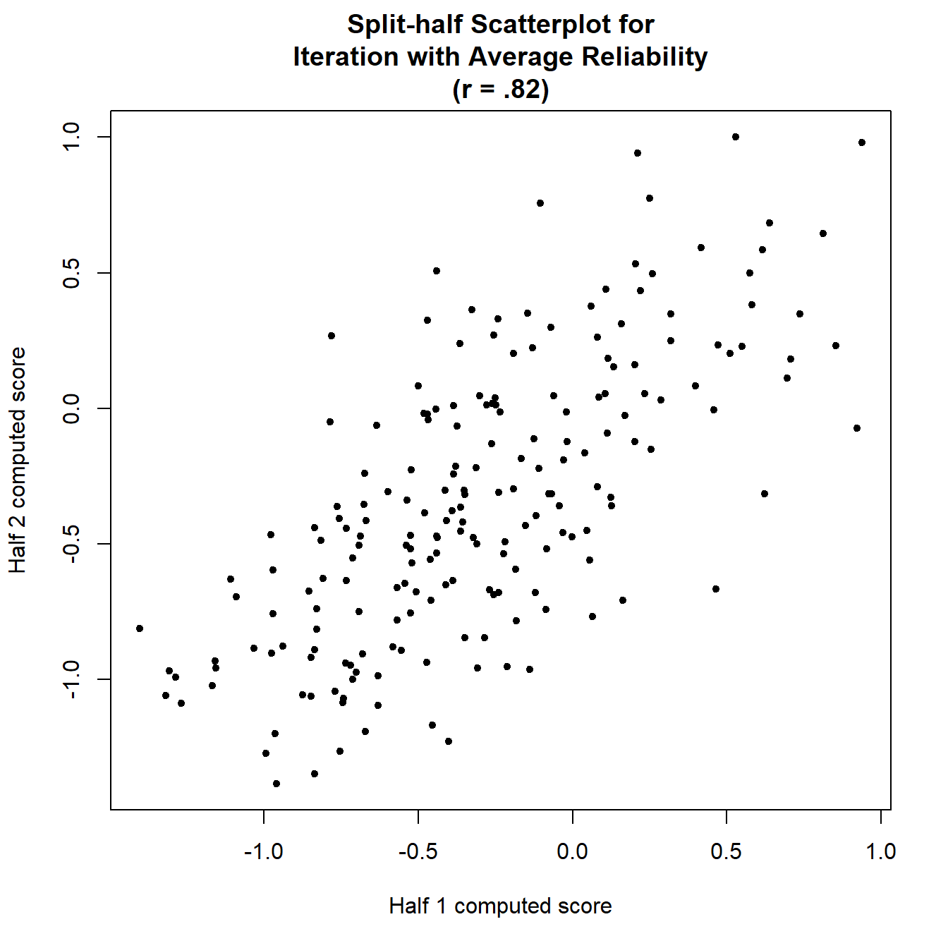 print(rel)## Full-length reliability (Spearman-Brown coefficient):