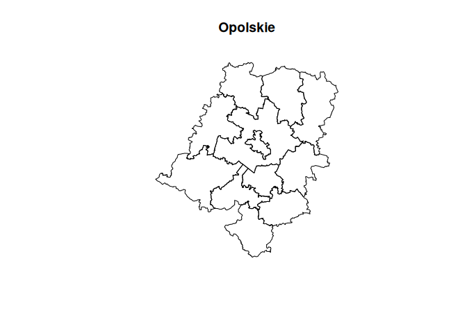 plot(st_geometry(counties_geom), main = "Opolskie")