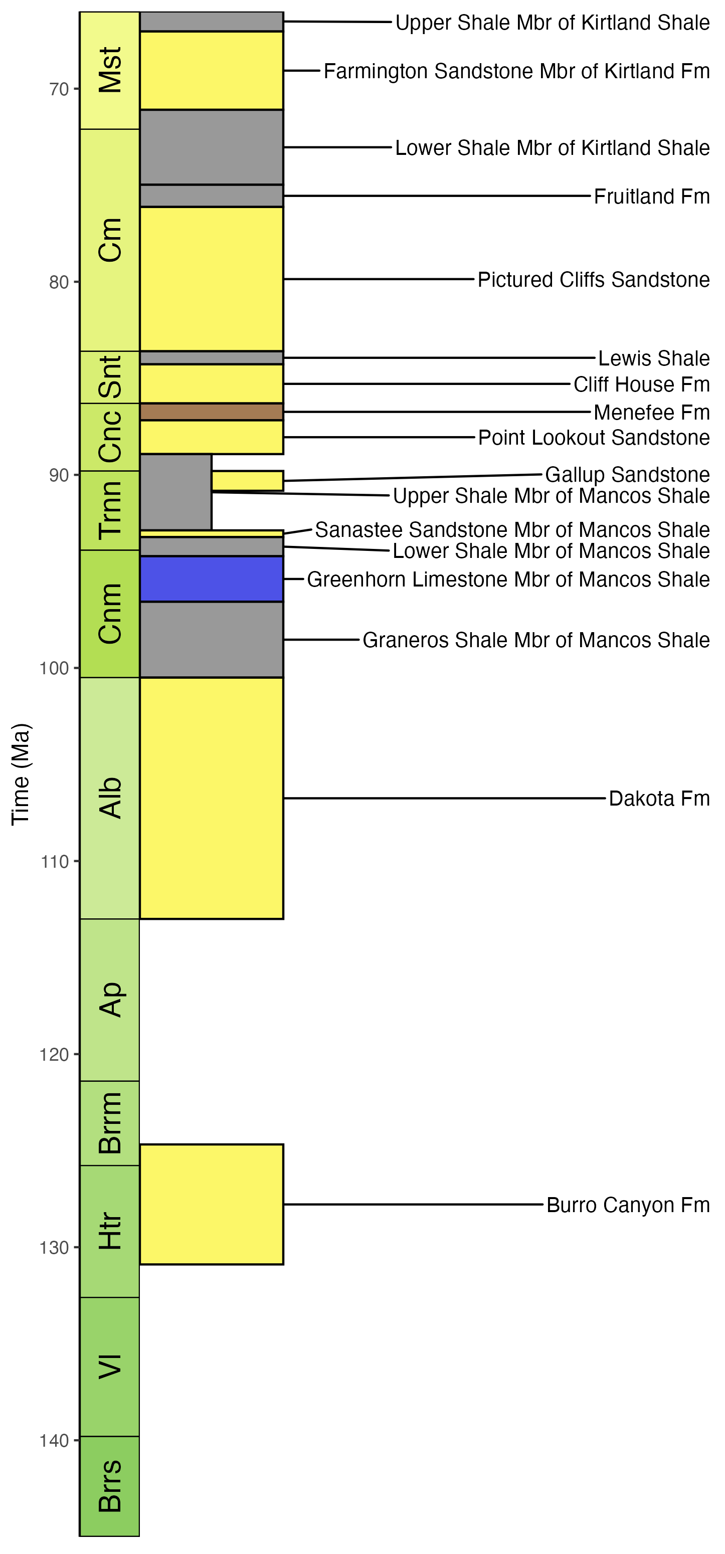 devtools::install_github("palaeoverse/rmacrostrat")A minimal example of getting and plotting a stratigraphic column for the San Juan Basin: