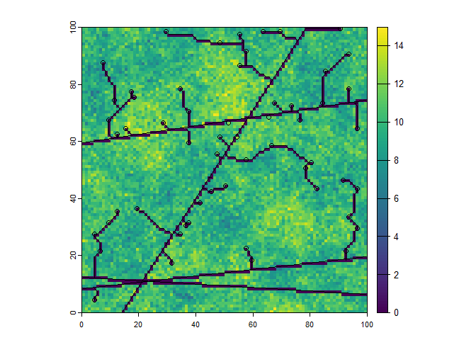 devtools::install_github("LandSciTech/roads")To simulate the development of roads three inputs are needed: the