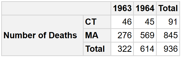 | 1964 | 9 | 02/29/1964 | 1 | MA | Cambridge | 0 | 26 | 0 | 0 | 2 | 8 | 16 |