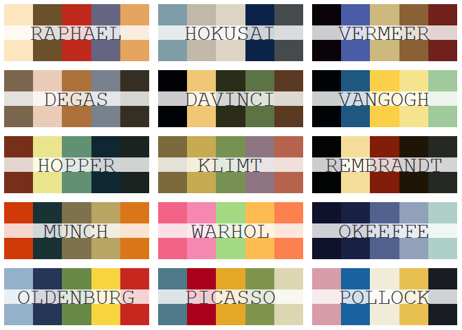 Use the palettes of famous artists in your own visualizations.