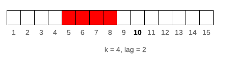 illustrates window of size k = 5 lagged by