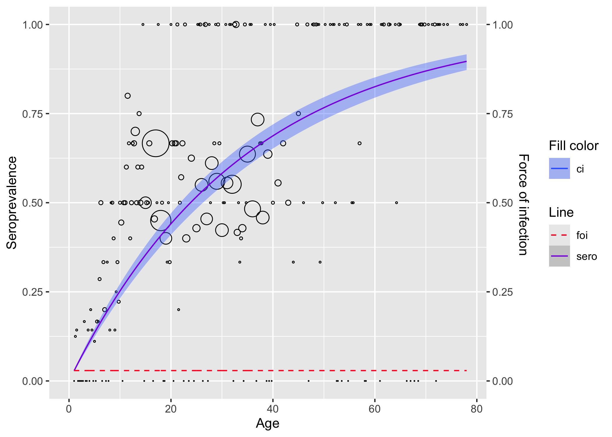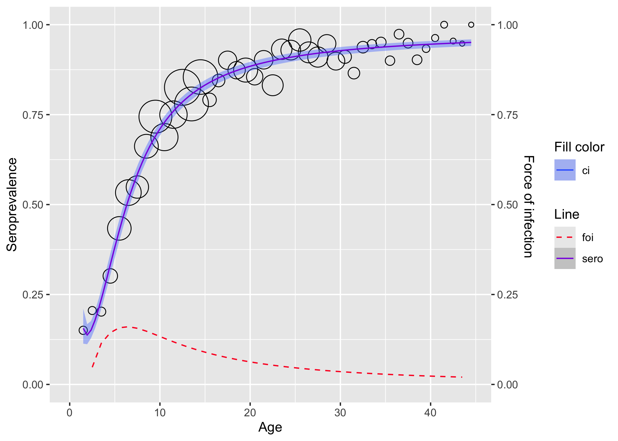 rubella <- rubella_uk_1986_1987The following methods are available to estimate seroprevalence and force of infection.