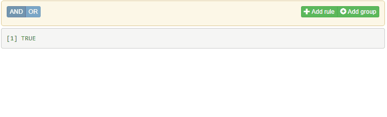 shinyQueryBuilder provides an input widget that allows to construct complex filtering queries in Shiny. It’s a wrapper for JS library jQuery-QueryBuilder.