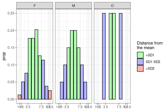 #> $ General Score: num 4 3 6 3 5 3 4 8 3 2 ...Generate norms for different groups on basis of up to two GroupConditions objects