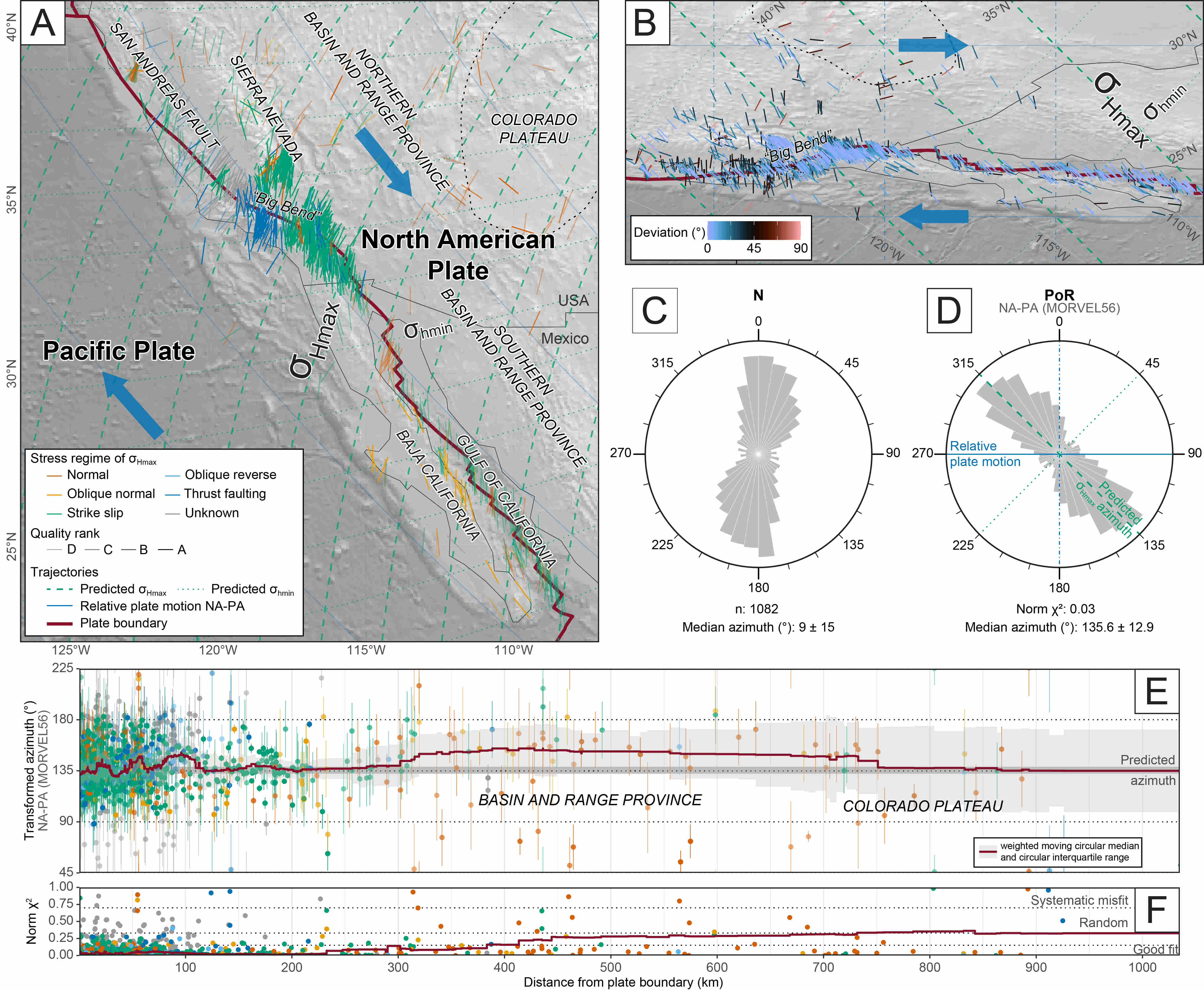 Stephan, T., Enkelmann, E., and Kroner, U. (2023). Analyzing the horizontal orientation of the crustal stress adjacent to plate boundaries. Scientific Reports, 13(1). DOI: 10.1038/s41598-023-42433-2.