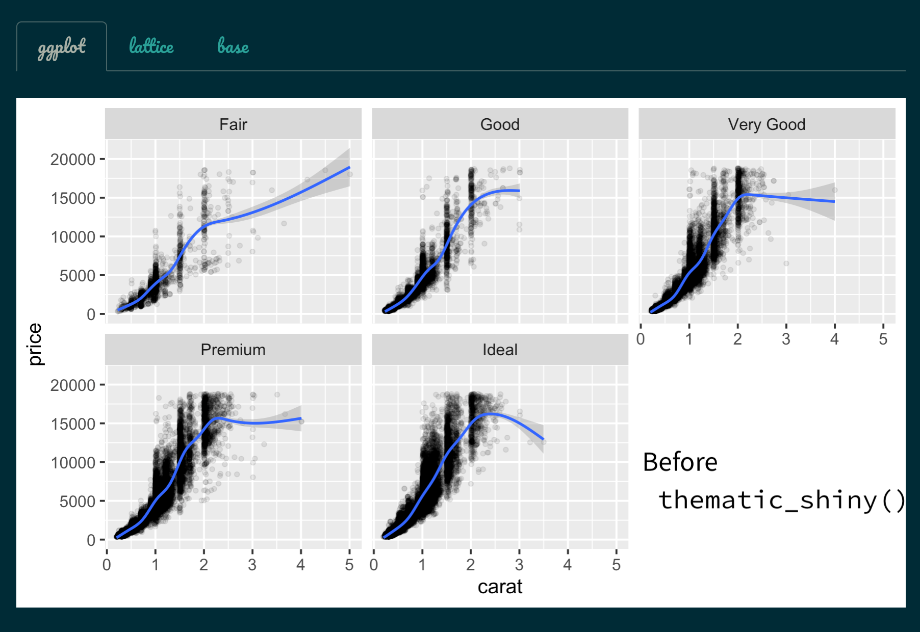 theming gives R plots the ability to style themselves inside Shiny (via CSS), RStudio (via