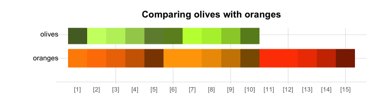 See the vignette on Colors and color functions and Color recipes for additional examples.