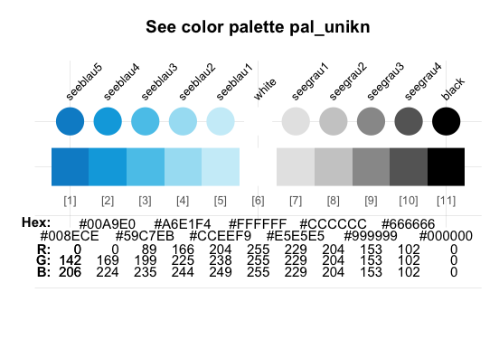16 palettes implementing the colors of the University of Konstanz’s corporate design